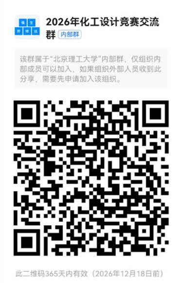 2.报名方式:请有意向参赛的学生扫描下方二维码,加入“2026年化工设计竞赛交流群”。所有竞赛相关信息,均将通过该群统一发布,请参赛队伍及时关注。