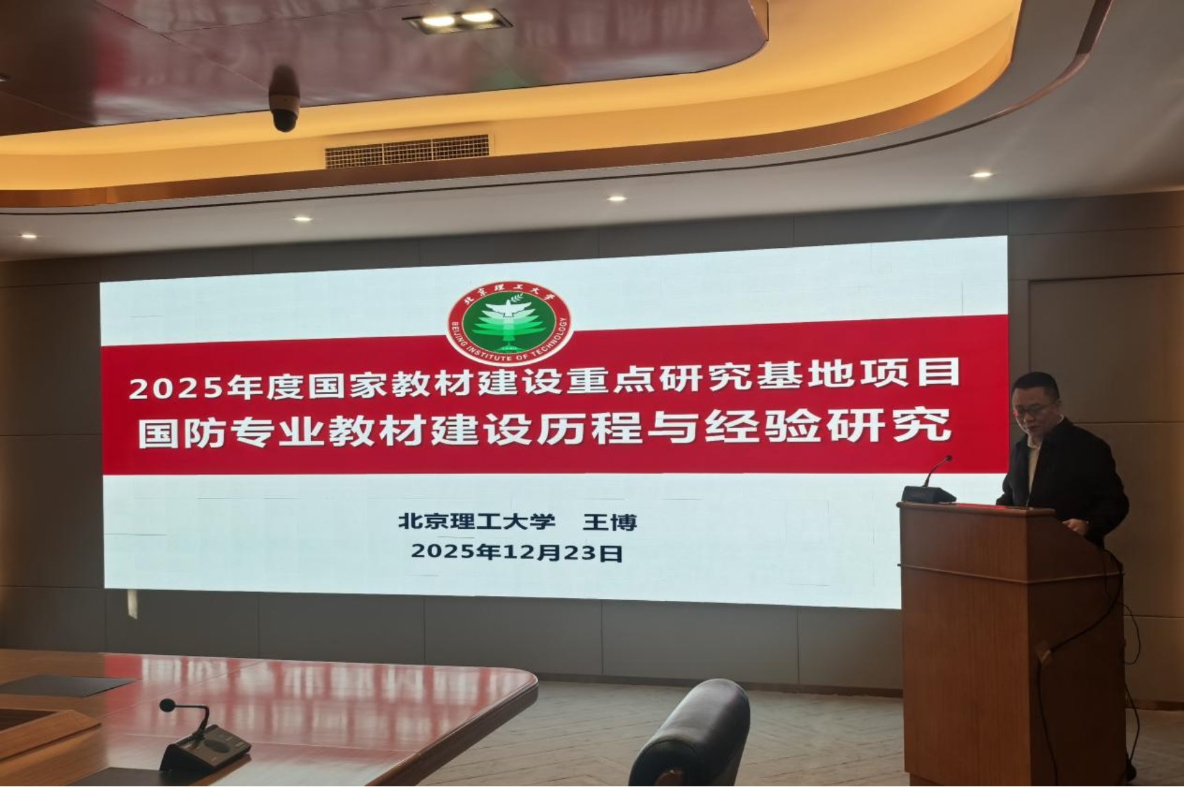 12月23日,高等学校国防专业教材研究基地重大项目“国防专业教材建设历程与经验研究”项目开题会在北京理工大学顺利举行。此项目在教育部教材局支持下,由北京理工大学党委常委、副校长、“高等学校国防专业教材研究”国家教材建设重点研究基地执行主任王博教授牵头申报。开题会由北理工教务部部长王美玲主持,教育部教材局有关处室负责人、项目评审专家及项目组成员参会。
