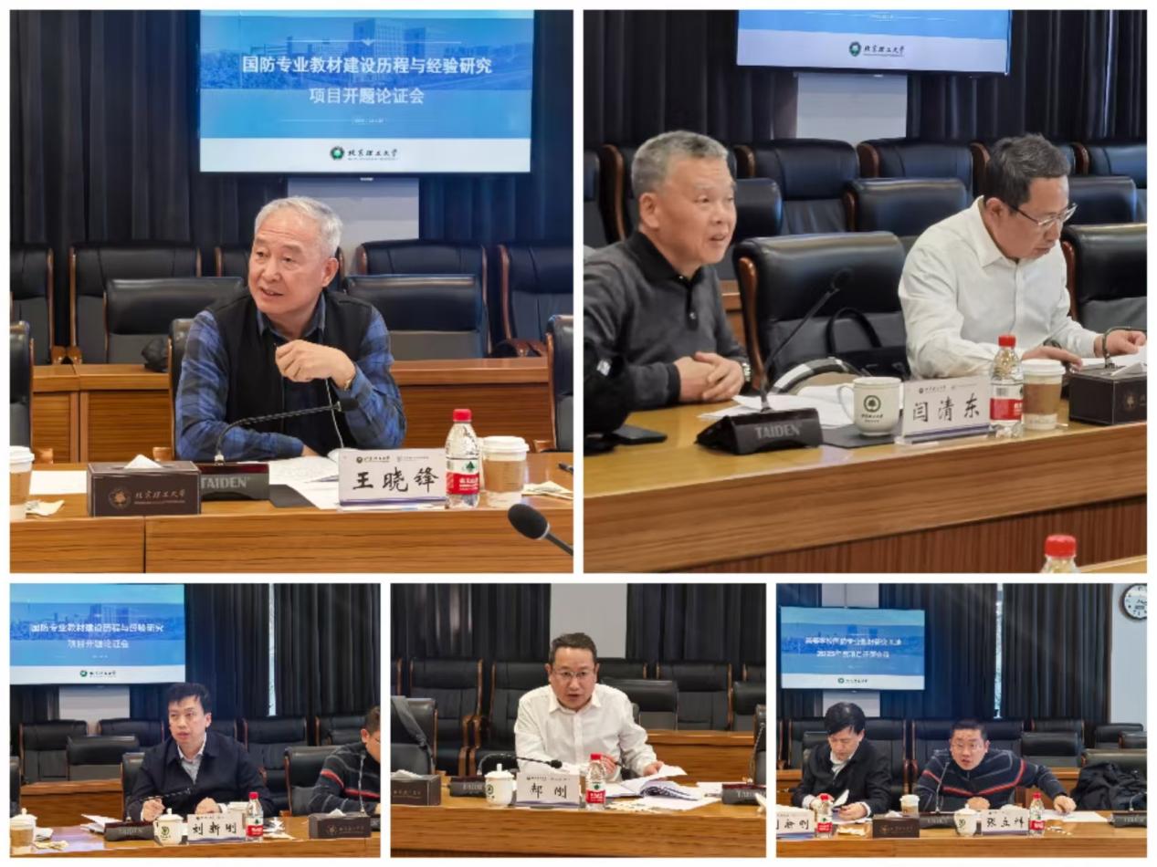 会上,北理工校务委员会副主任、教育部兵器类教学指导委员会主任王晓锋,机械与车辆学院教授、国家级教学名师闫清东,马克思主义学院教授、国家级教学名师刘新刚,融通传媒有限公司党委书记、国防工业出版社社长郝刚,中国工信出版集团副总经理张立科,作为开题论证专家对课题开展提出了建设性建议。